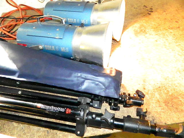 2XFLASH HEADS,2 STANDS,2 UMBRELLAS,2X POWER LEADS,SYNC CABLE.